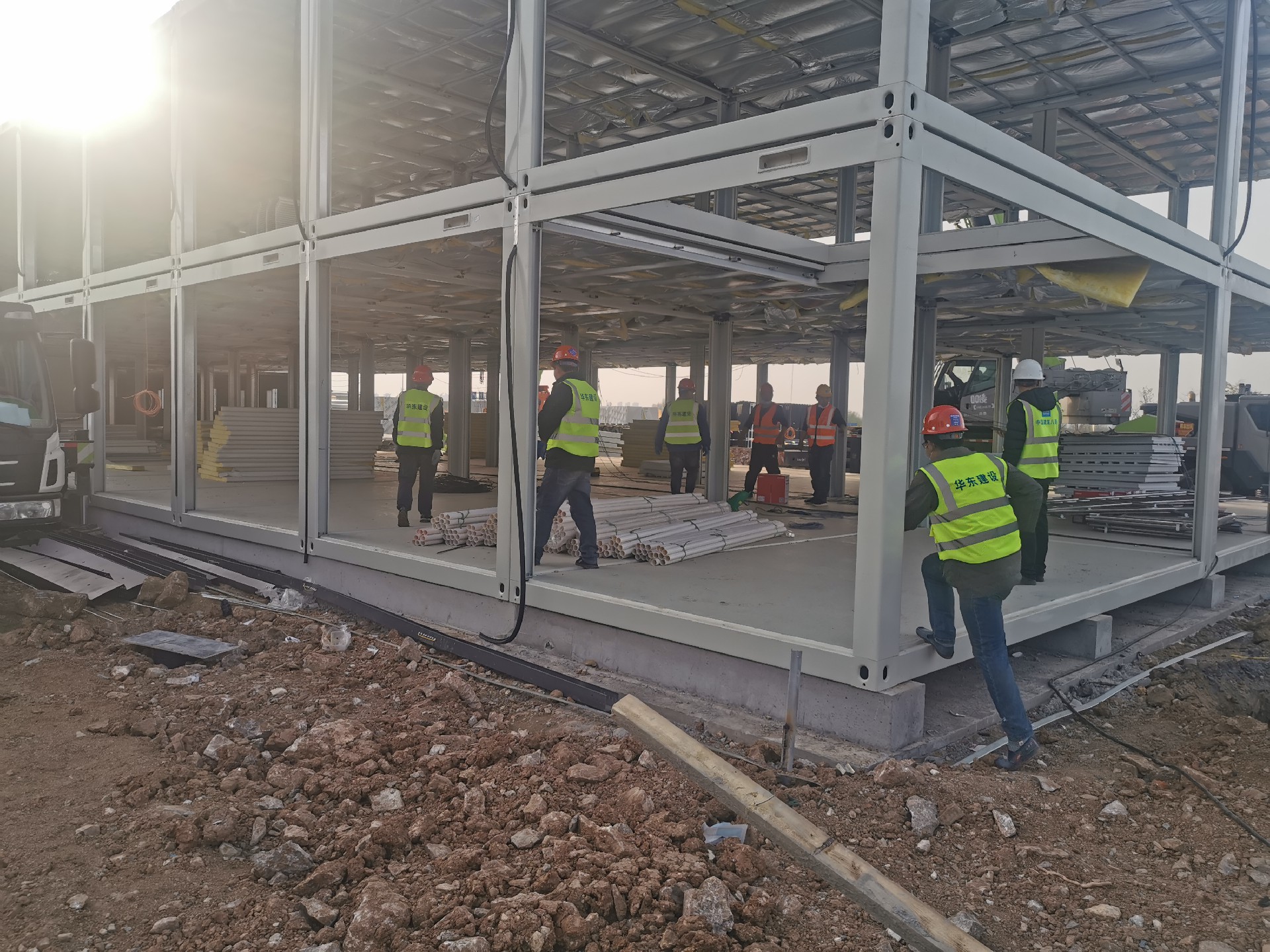 4月3日下午,市住建局緊急通知,要求集團(tuán)華東公司組織骨干力量支援市方艙醫(yī)院項(xiàng)目的建設(shè)。華東公司接到通知后立即行動(dòng),制定援建計(jì)劃,抽調(diào)各項(xiàng)目部骨干力量,組建援建突擊隊(duì),并向參與援建的管理和施工人員下發(fā)集結(jié)動(dòng)員令。4日早6時(shí),以熟練安裝技工20余人為主的突擊隊(duì)裝備防護(hù)用品和專用安裝工具,前往市方艙醫(yī)院項(xiàng)目駐地。抵達(dá)援建項(xiàng)目后,華東公司副總經(jīng)理杜濤,專職安全員魯陽(yáng)指揮突擊隊(duì)及時(shí)對(duì)接,迅速開(kāi)展工作,以全力開(kāi)動(dòng)不停歇的勁頭加快項(xiàng)目建設(shè),保證完成市方艙醫(yī)院在交付期前的各項(xiàng)工作任務(wù)。